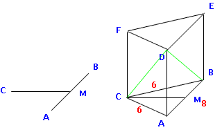 Grundfläche:  Zum zeichnen der Grundfläche im Schrägbild brauchen wir die Höhe [CM]: CM 2 = 6 2 – 4 2 | √ EH = 4,47 cm Zuerst wird [CM] gezeichnet. An den Punkt M kommt nun die Basis [AB], wegen der Schräge nur mit 4 cm gezeichnet und davon die Hälfte nach oben, die Hälfte nach unten.