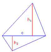 Zwei Dreiecke besitzen die gleiche Grundseite c = 13 cm, aber unterschiedliche Höhen auf diese Grundseiten. Berechne die Höhe im zweiten Dreieck, wenn die im ersten Dreieck h1 = 7,5 cm beträgt und das erste Dreieck einen dreimal so großen Flächeninhalt besitzt wie das zweite.