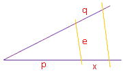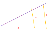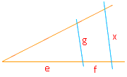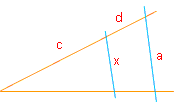Denke daran, dass die Strahlen oben beginnen, deshalb 50 – x.