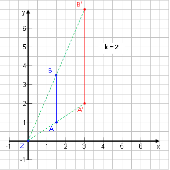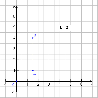 Eine Strecke [AB] der Länge AB = 3 cm wird mit dem Faktor k = 2,5 gestreckt. Wie lang wird die Strecke [A'B']? |
