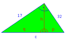 c2 = 172 + 322 = 1313 | √ c = 36,24 cm
