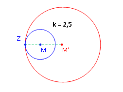 Man multipliziert den Abstand des Mittelpunktes zum Zentrum und auch den Radius mit k.